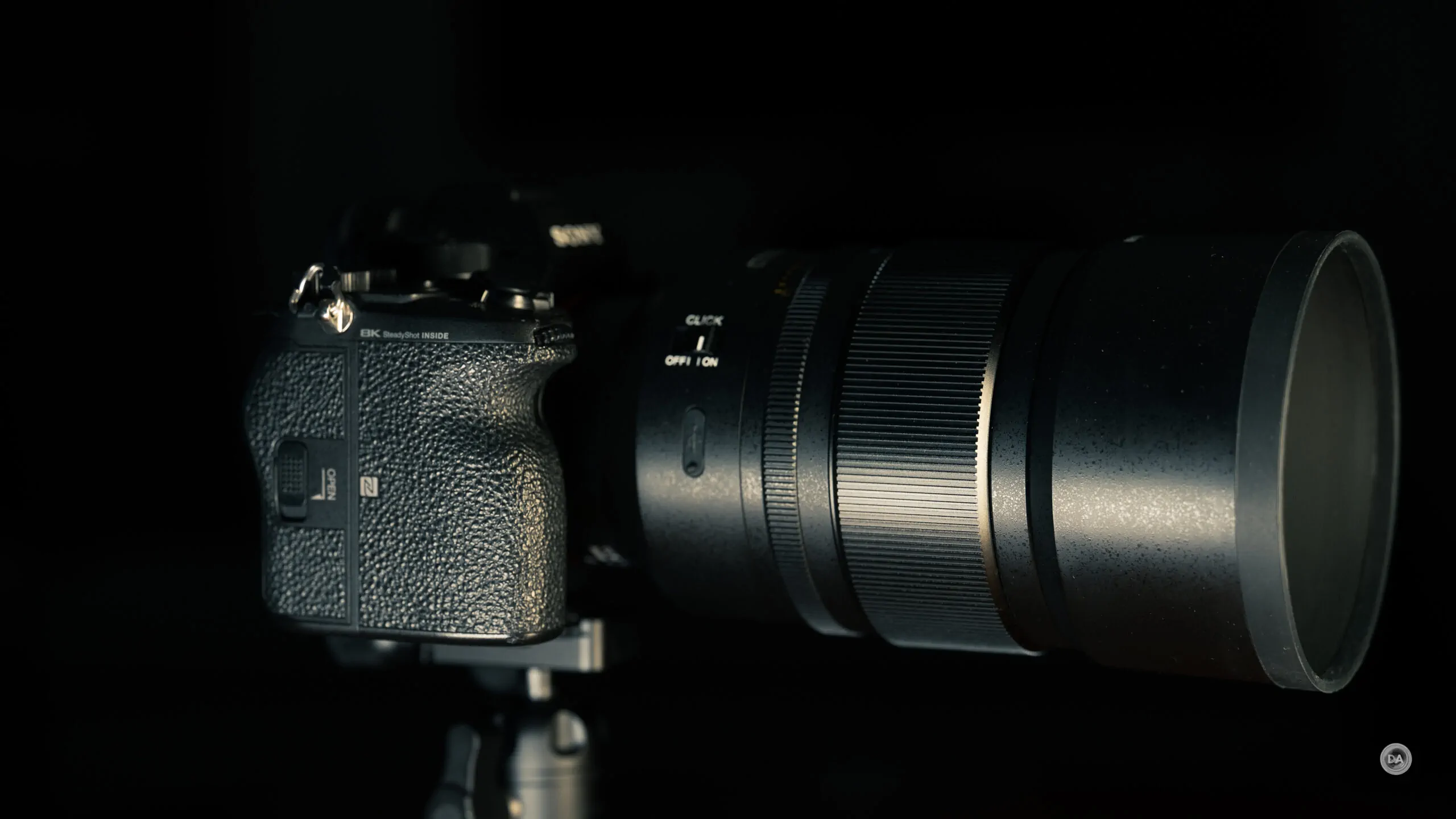 Thân vỏ nhôm hàng không nguyên khối, mang lại cảm giác cầm nắm chắc chắn, chuyên nghiệp. Vòng khẩu độ De-click hỗ trợ quay phim mượt mà.